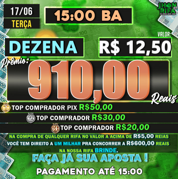 TOP 1ºR$50,00 /TOP 2º R$30,00 /TOP 3ºR$20,00