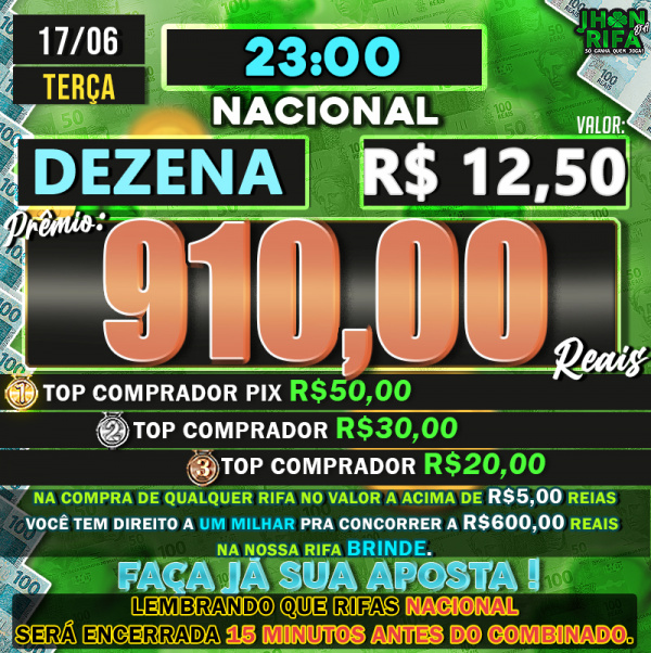 TOP 1ºR$50,00 /TOP 2º R$30,00 /TOP 3ºR$20,00
