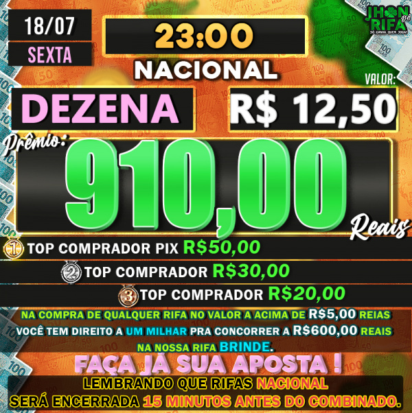 TOP 1ºR$50,00 /TOP 2º R$30,00 /TOP 3ºR$20,00
