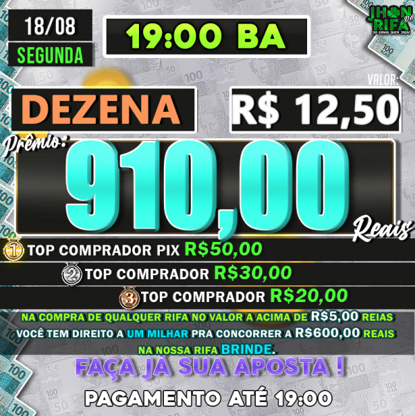 TOP 1ºR$50,00 /TOP 2º R$30,00 /TOP 3ºR$20,00
