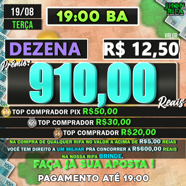 TOP 1ºR$50,00 /TOP 2º R$30,00 /TOP 3ºR$20,00
