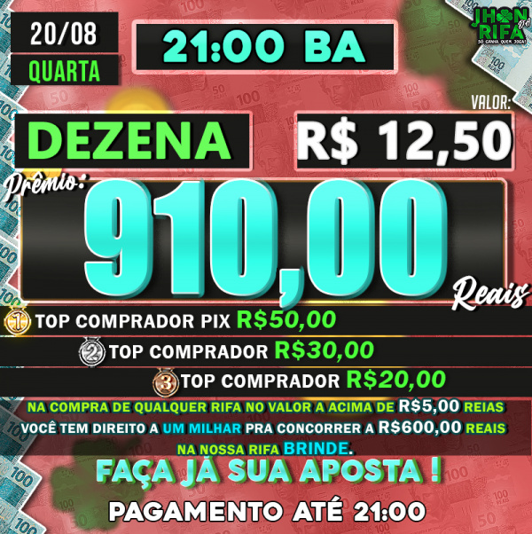 TOP 1ºR$50,00 /TOP 2º R$30,00 /TOP 3ºR$20,00