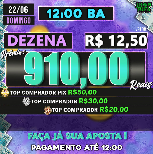 TOP 1ºR$50,00 /TOP 2º R$30,00 /TOP 3ºR$20,00