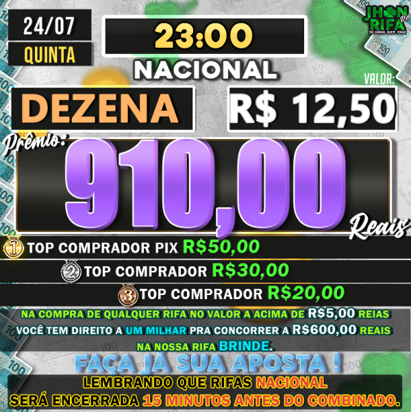 TOP 1ºR$50,00 /TOP 2º R$30,00 /TOP 3ºR$20,00