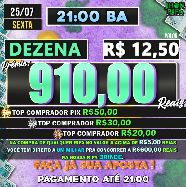 TOP 1ºR$50,00 /TOP 2º R$30,00 /TOP 3ºR$20,00