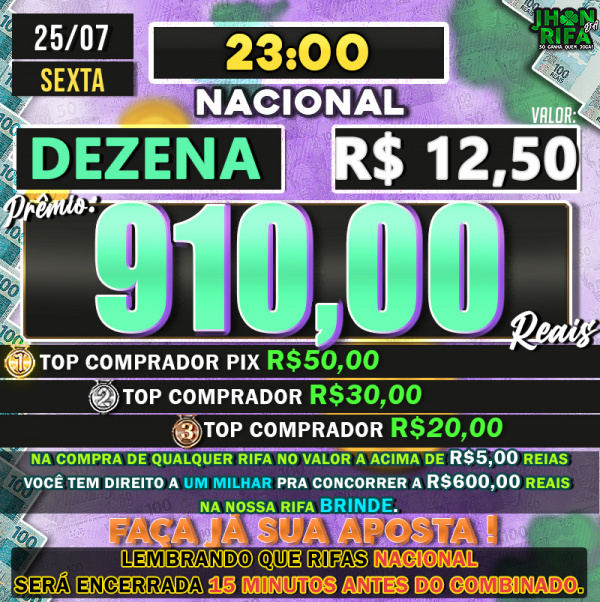TOP 1ºR$50,00 /TOP 2º R$30,00 /TOP 3ºR$20,00