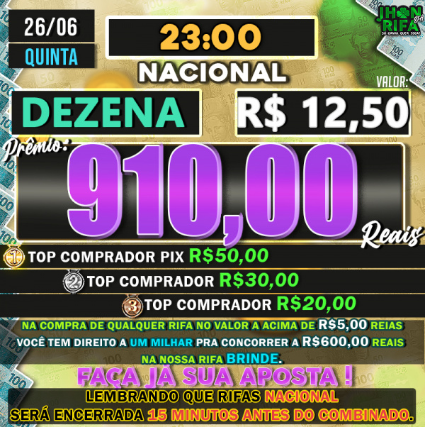 TOP 1ºR$50,00 /TOP 2º R$30,00 /TOP 3ºR$20,00
