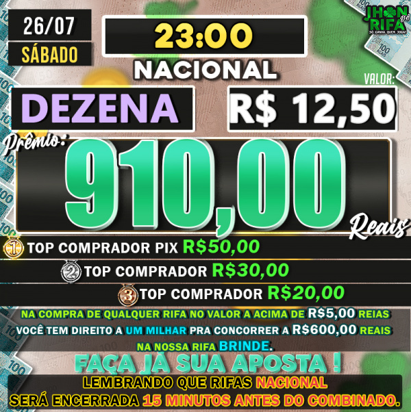 TOP 1ºR$50,00 /TOP 2º R$30,00 /TOP 3ºR$20,00