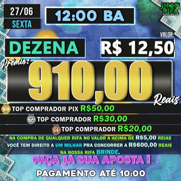 Sorteio: 27/06/2025 às 12:00