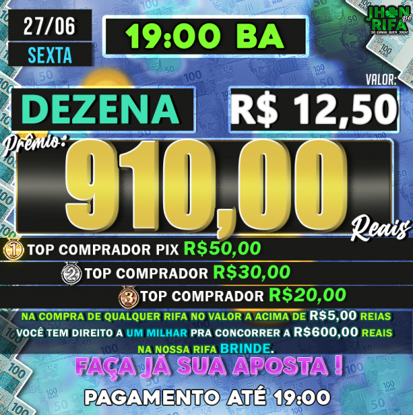 TOP 1ºR$50,00 /TOP 2º R$30,00 /TOP 3ºR$20,00