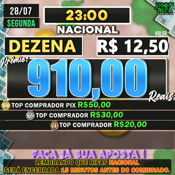 TOP 1ºR$50,00 /TOP 2º R$30,00 /TOP 3ºR$20,00