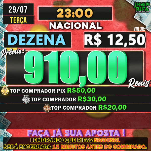 TOP 1ºR$50,00 /TOP 2º R$30,00 /TOP 3ºR$20,00