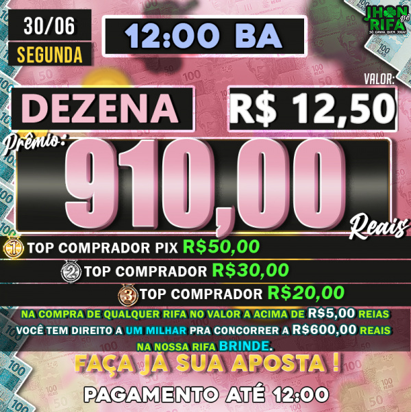 TOP 1ºR$50,00 /TOP 2º R$30,00 /TOP 3ºR$20,00