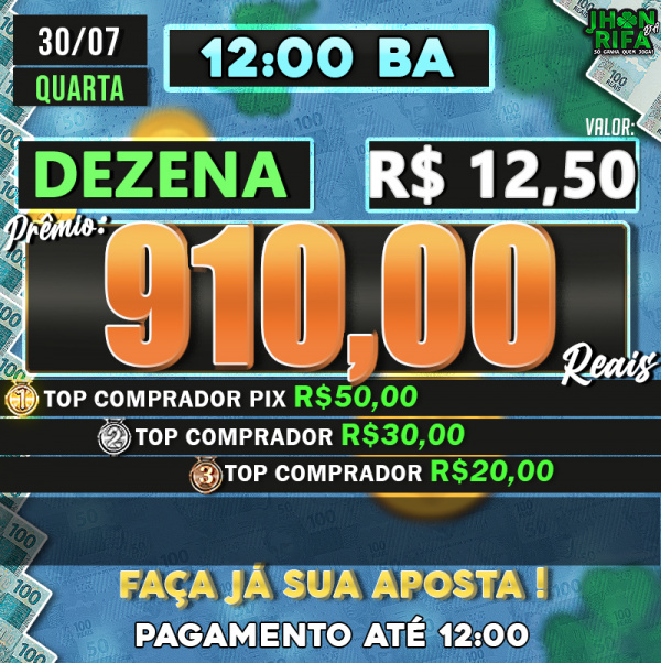 TOP 1ºR$50,00 /TOP 2º R$30,00 /TOP 3ºR$20,00