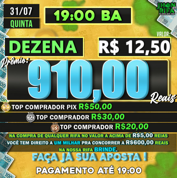 TOP 1ºR$50,00 /TOP 2º R$30,00 /TOP 3ºR$20,00