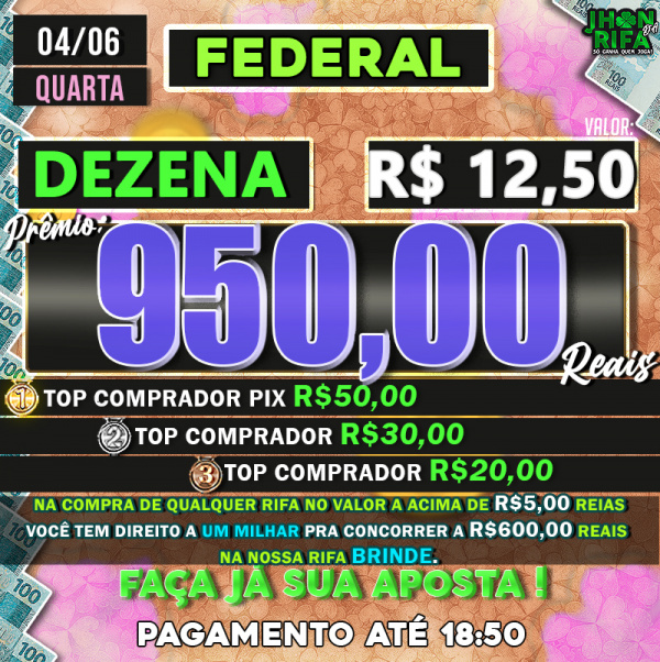 TOP 1ºR$50,00 /TOP 2º R$30,00 /TOP 3ºR$20,00