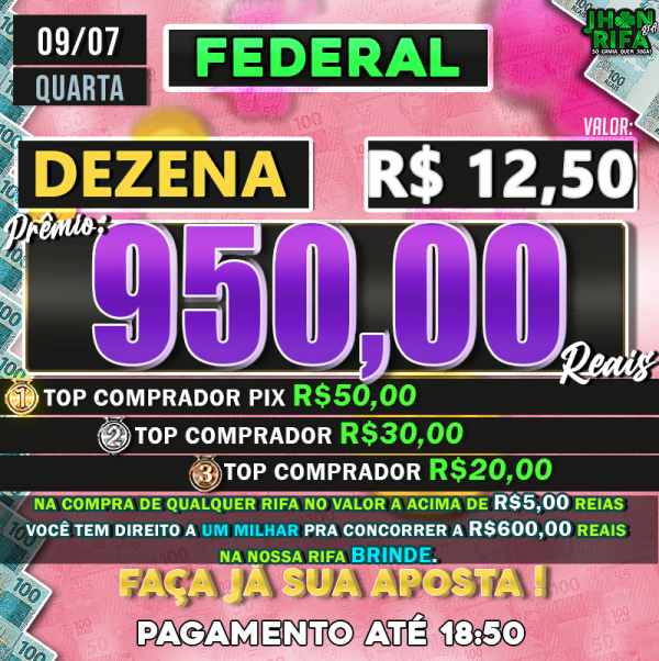 TOP 1ºR$50,00 /TOP 2º R$30,00 /TOP 3ºR$20,00