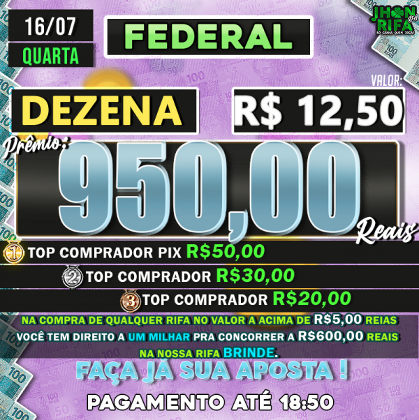 TOP 1ºR$50,00 /TOP 2º R$30,00 /TOP 3ºR$20,00