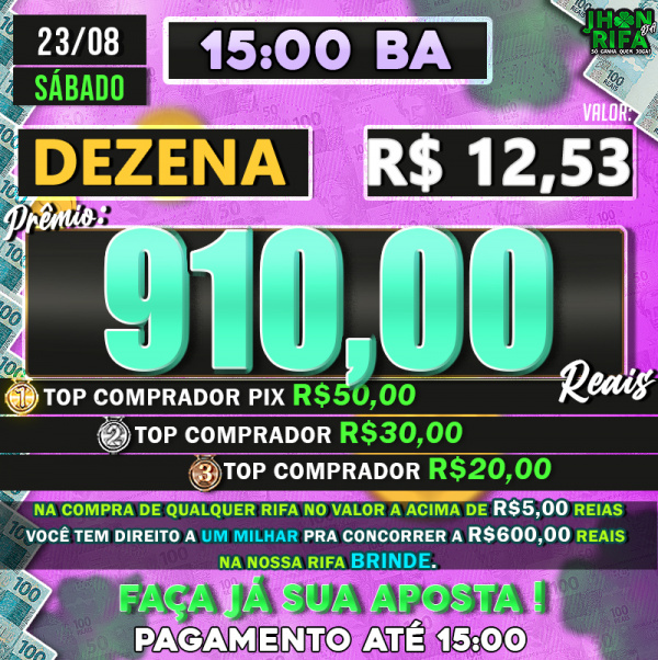 Sorteio: 23/08/2025 às 15:00
