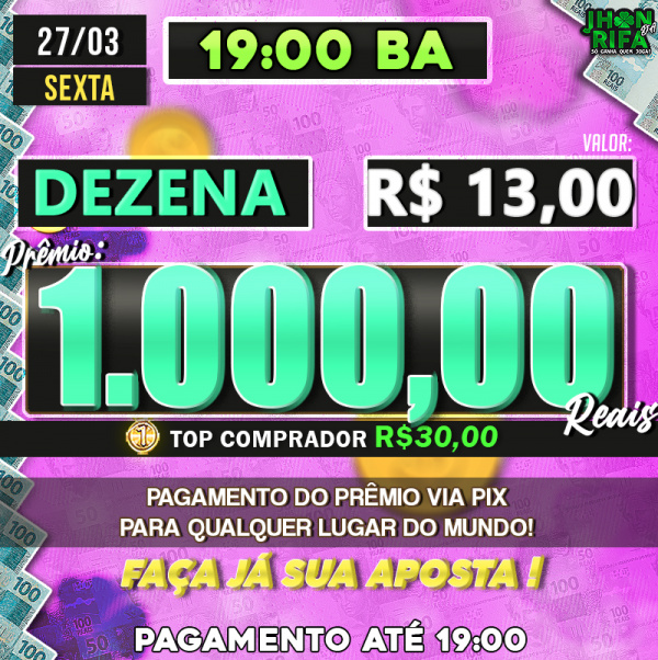 Sorteio: 27/03/2026 às 19:00
