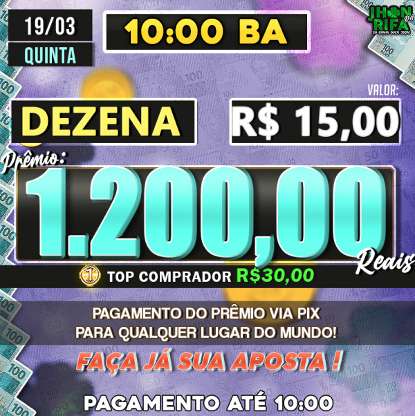 Sorteio: 19/03/2026 às 10:00
