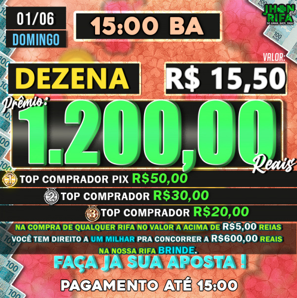 TOP 1ºR$50,00 /TOP 2º R$30,00 /TOP 3ºR$20,00