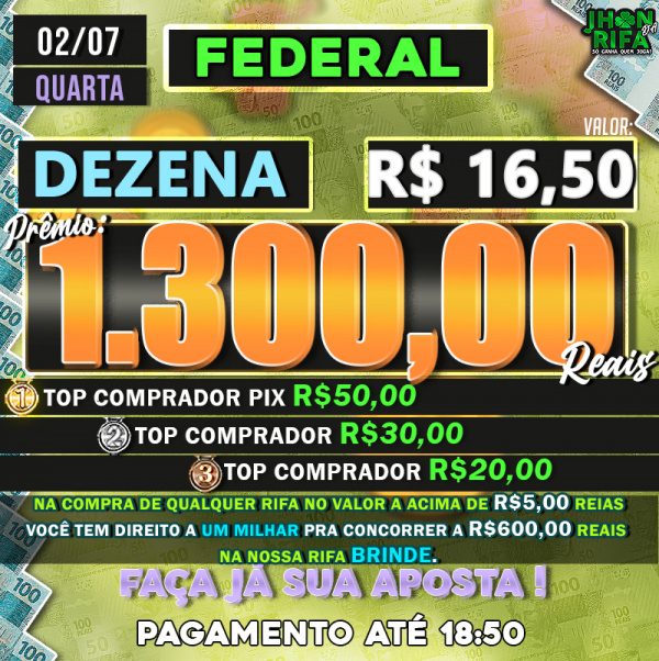 TOP 1ºR$50,00 /TOP 2º R$30,00 /TOP 3ºR$20,00