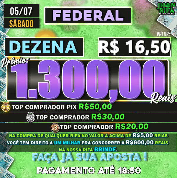 TOP 1ºR$50,00 /TOP 2º R$30,00 /TOP 3ºR$20,00