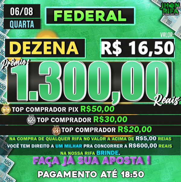 TOP 1ºR$50,00 /TOP 2º R$30,00 /TOP 3ºR$20,00