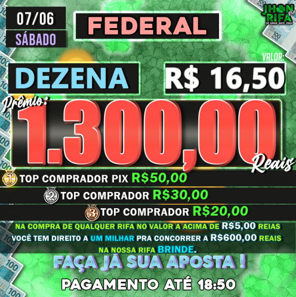 TOP 1ºR$50,00 /TOP 2º R$30,00 /TOP 3ºR$20,00