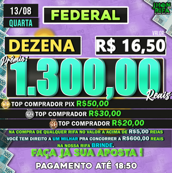 TOP 1ºR$50,00 /TOP 2º R$30,00 /TOP 3ºR$20,00