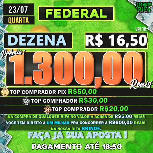 TOP 1ºR$50,00 /TOP 2º R$30,00 /TOP 3ºR$20,00