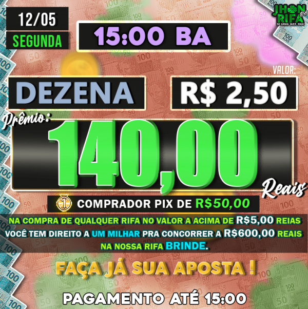 Sorteio: 12/05/2025 às 15:00