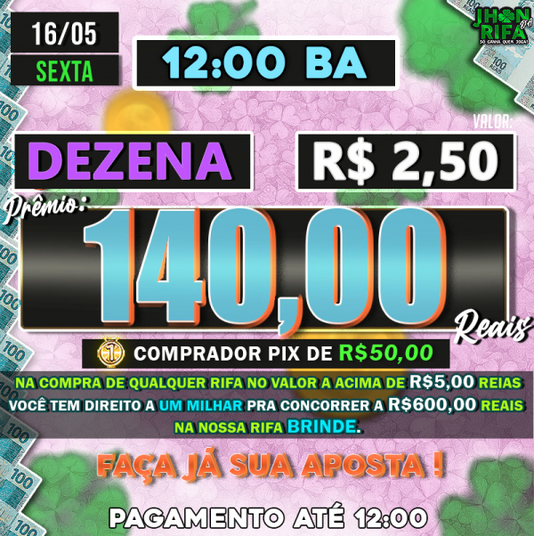 Sorteio: 16/05/2025 às 12:00