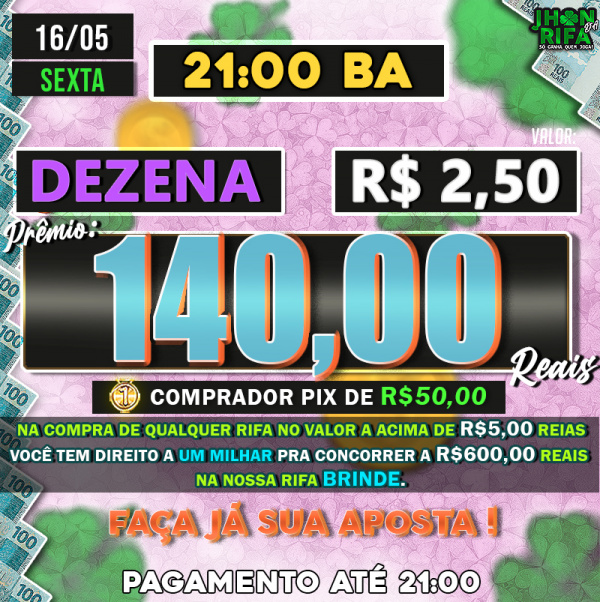 Sorteio: 16/05/2025 às 21:00