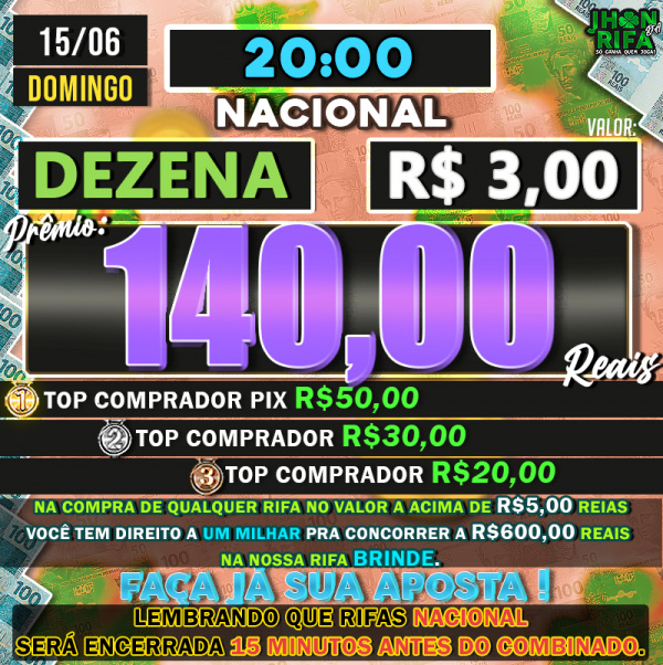 TOP 1ºR$50,00 /TOP 2º R$30,00 /TOP 3ºR$20,00