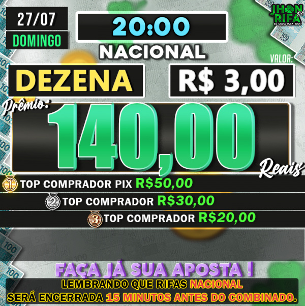 TOP 1ºR$50,00 /TOP 2º R$30,00 /TOP 3ºR$20,00