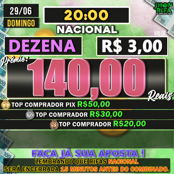 TOP 1ºR$50,00 /TOP 2º R$30,00 /TOP 3ºR$20,00