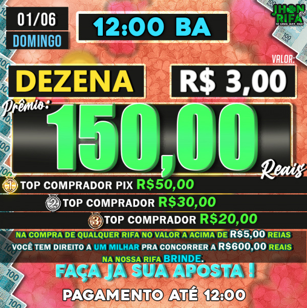 TOP 1ºR$50,00 /TOP 2º R$30,00 /TOP 3ºR$20,00