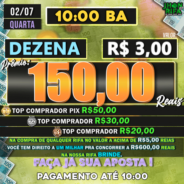 TOP 1ºR$50,00 /TOP 2º R$30,00 /TOP 3ºR$20,00