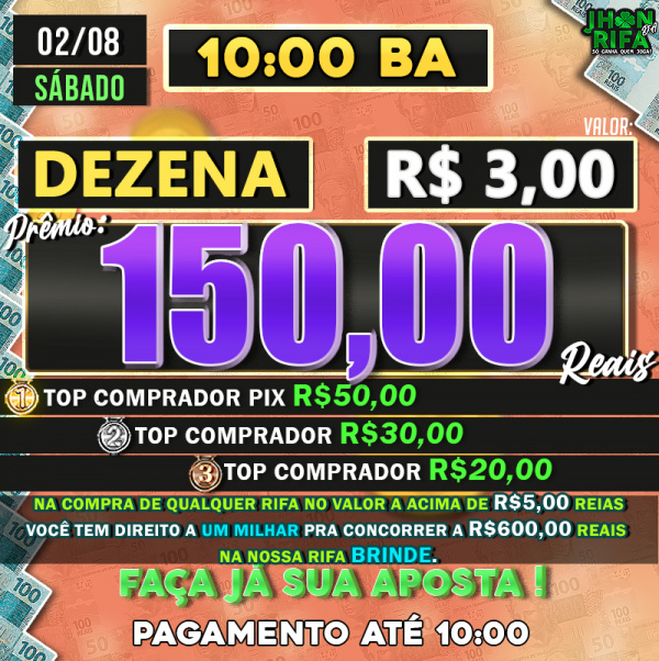 TOP 1ºR$50,00 /TOP 2º R$30,00 /TOP 3ºR$20,00