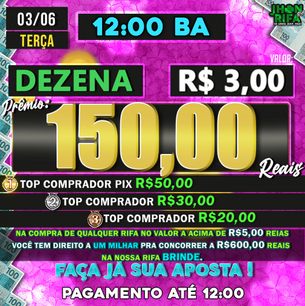 TOP 1ºR$50,00 /TOP 2º R$30,00 /TOP 3ºR$20,00