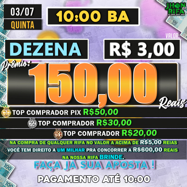TOP 1ºR$50,00 /TOP 2º R$30,00 /TOP 3ºR$20,00