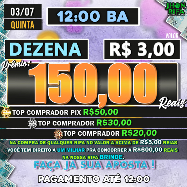 TOP 1ºR$50,00 /TOP 2º R$30,00 /TOP 3ºR$20,00