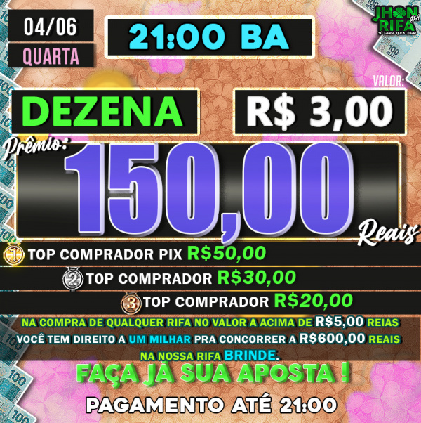 TOP 1ºR$50,00 /TOP 2º R$30,00 /TOP 3ºR$20,00