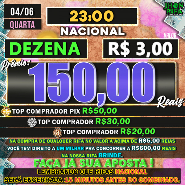 TOP 1ºR$50,00 /TOP 2º R$30,00 /TOP 3ºR$20,00