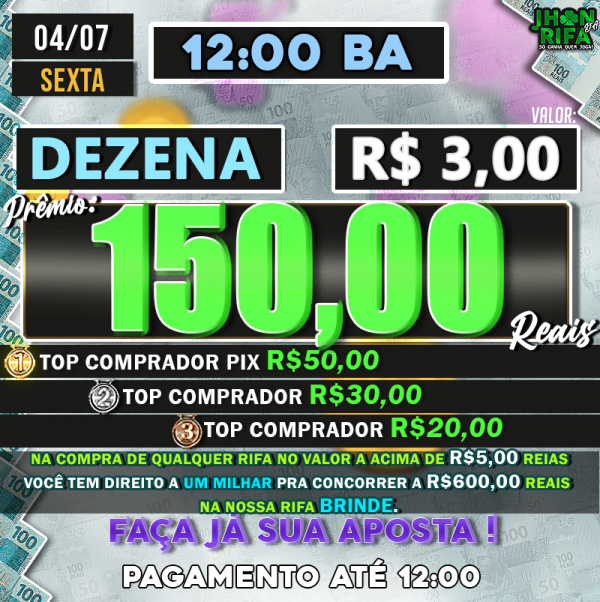 TOP 1ºR$50,00 /TOP 2º R$30,00 /TOP 3ºR$20,00
