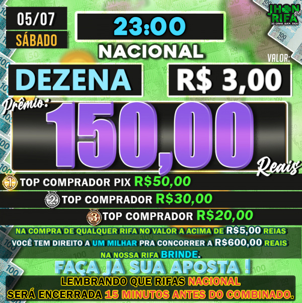 TOP 1ºR$50,00 /TOP 2º R$30,00 /TOP 3ºR$20,00