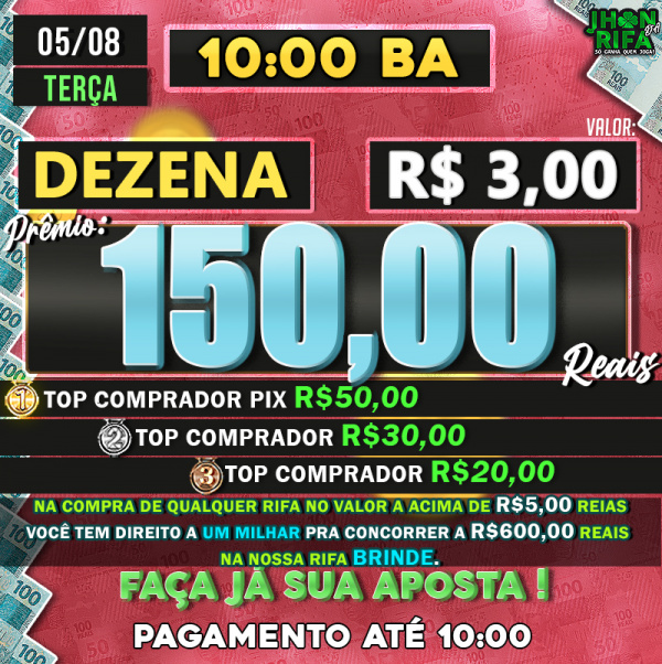 TOP 1ºR$50,00 /TOP 2º R$30,00 /TOP 3ºR$20,00