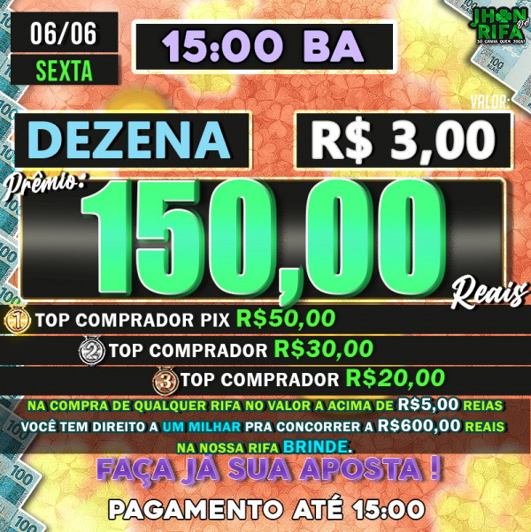 TOP 1ºR$50,00 /TOP 2º R$30,00 /TOP 3ºR$20,00